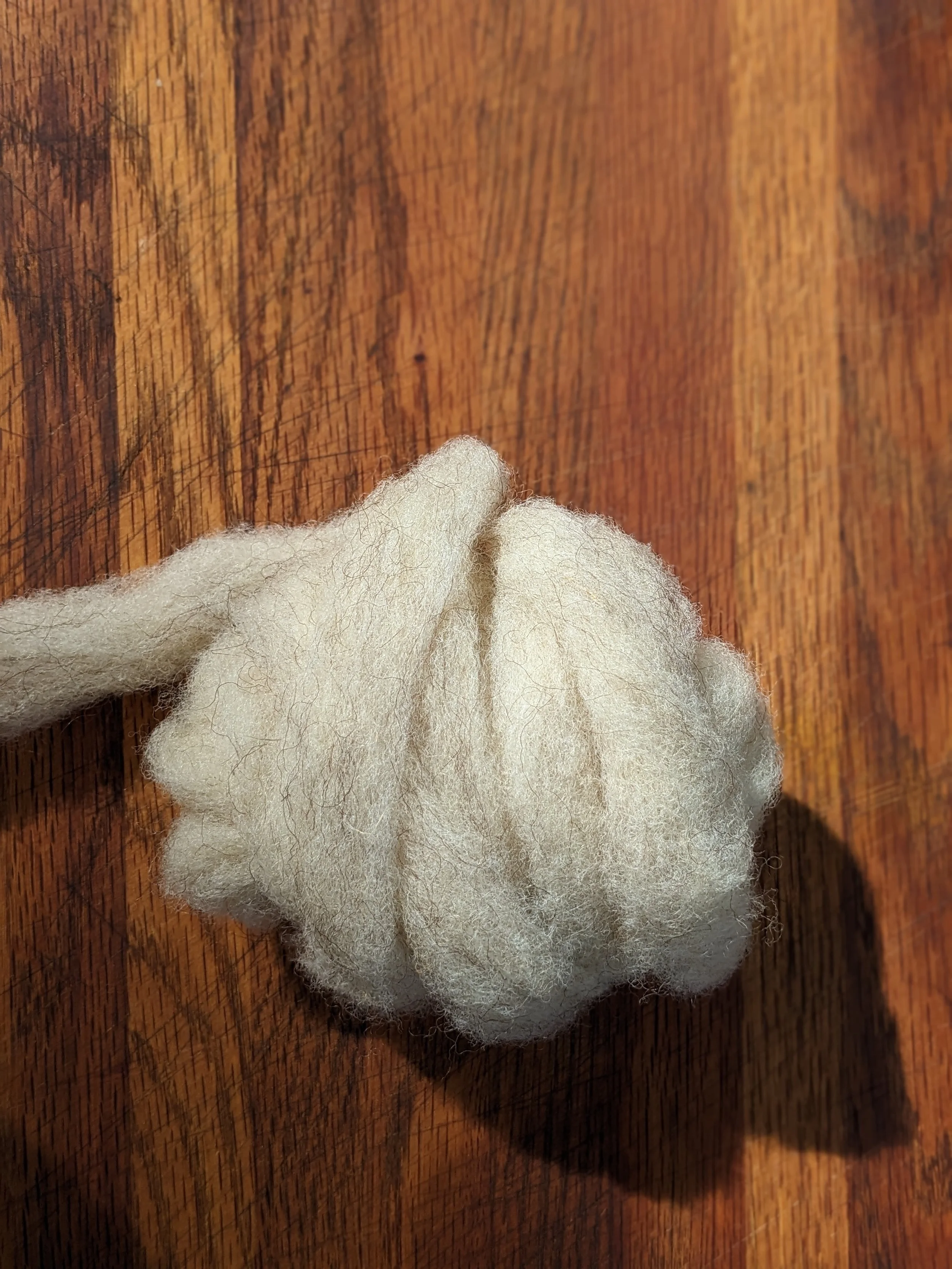 California Red wool is super unique: medium soft, natural color of oatmeal with soft red hairs.